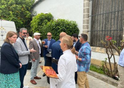 Tras la visita todos los asistentes se desplazaron a una de las bodegas míticas de nuestra tierra, Las Bodegas Álvaro Domecq. Un marco incomparable donde se disfrutó de un almuerzo en familia gracias, al buen hacer culinario de Restaurante Antonio que ofrecío una cocina cuidada, de calidad y una atención profesional ofreciendo lo mejor de este establecimiento con más de 40 años de historia.